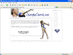 General Info | Webmasters | Past Layouts Here is the very first layout that was up on Shavahn's site when it opened on April 21, 2003. At the time we had no real professional shots of Shavahn doing gymnastics, so we used a photo that her family had taken at the gym!