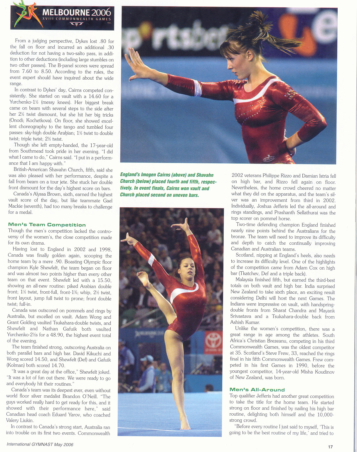 Photos Copyright: The Webmasters, The Church Family, Inside Gymnastics Magazine, and International Gymnast Magazine.