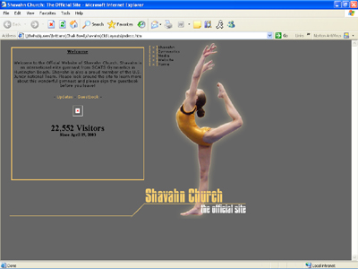 ![]() The 3rd layout was made on February 14th, 2004. The gorgeous design was by Emily and also featured a picture of Shavahn competing at 2003 Nationals. This layout was modified several times from 2004-2008 before the layout was finally changed in April of 2008.